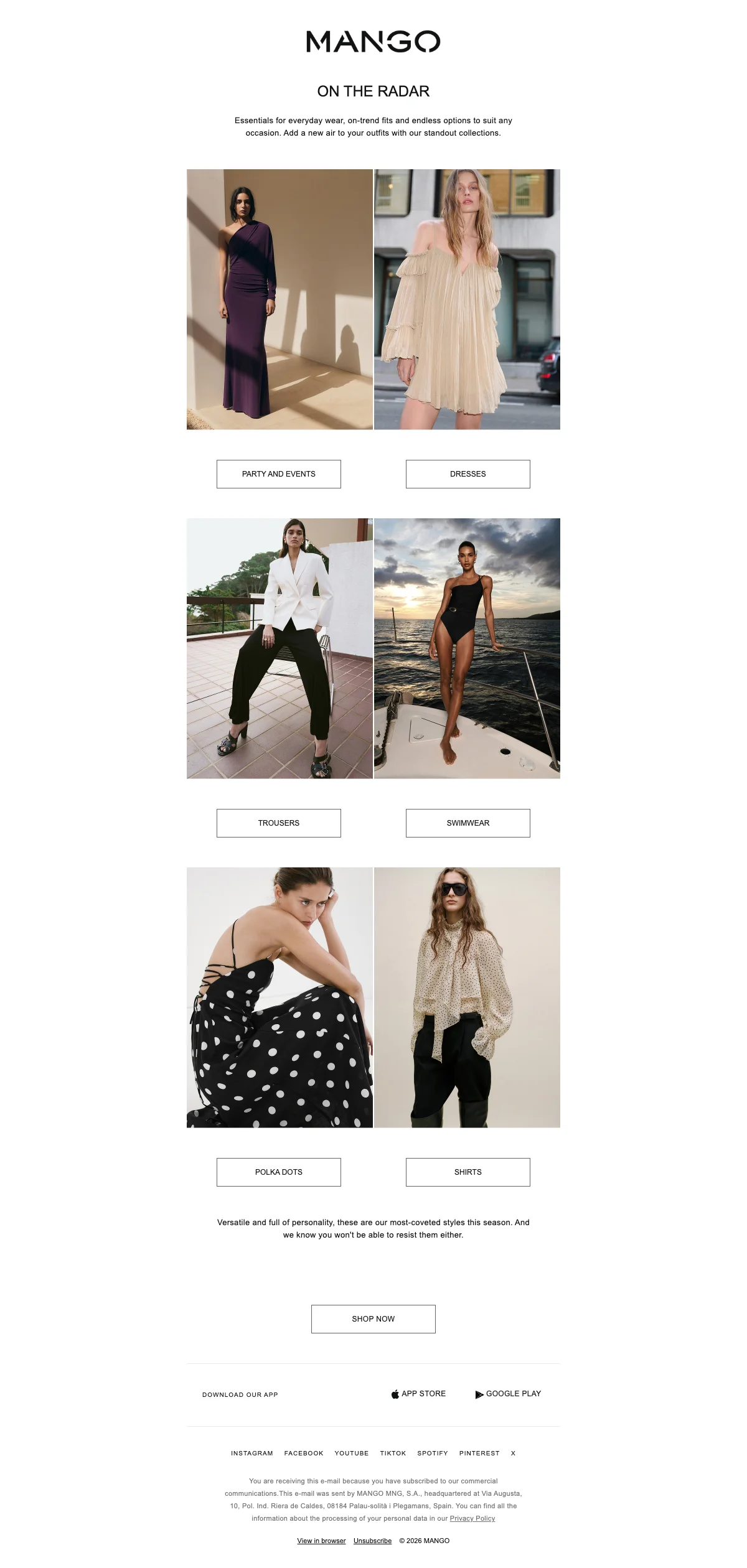 Dive into the Mango Mid-Season Sale and refresh your wardrobe with the latest women's fashion at unbeatable prices. Enjoy up to 50% off on selected items, from chic dresses and blouses to stylish accessories. It's the perfect opportunity to elevate your style with Mango's quality and design. Hurry, these deals won't last long. Transform your look and make a statement with Mango today.